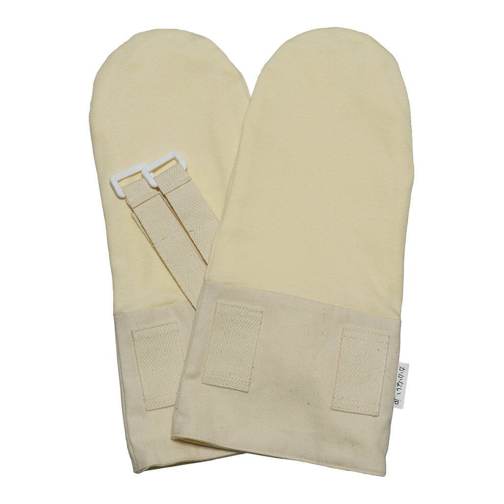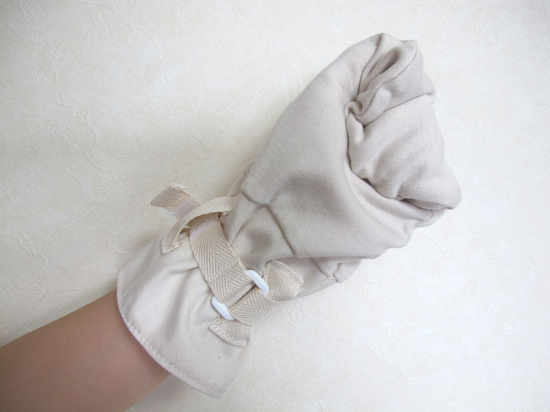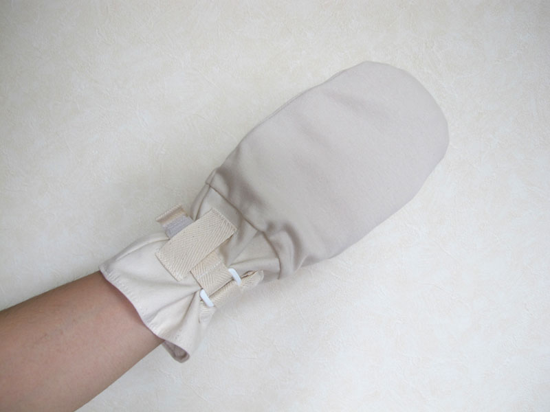 - アトピーによるかき壊しを軽減します。手全体を手袋で覆ってしまいますので、爪でかき壊しにくくなり、お肌へのダメージを軽減できます。